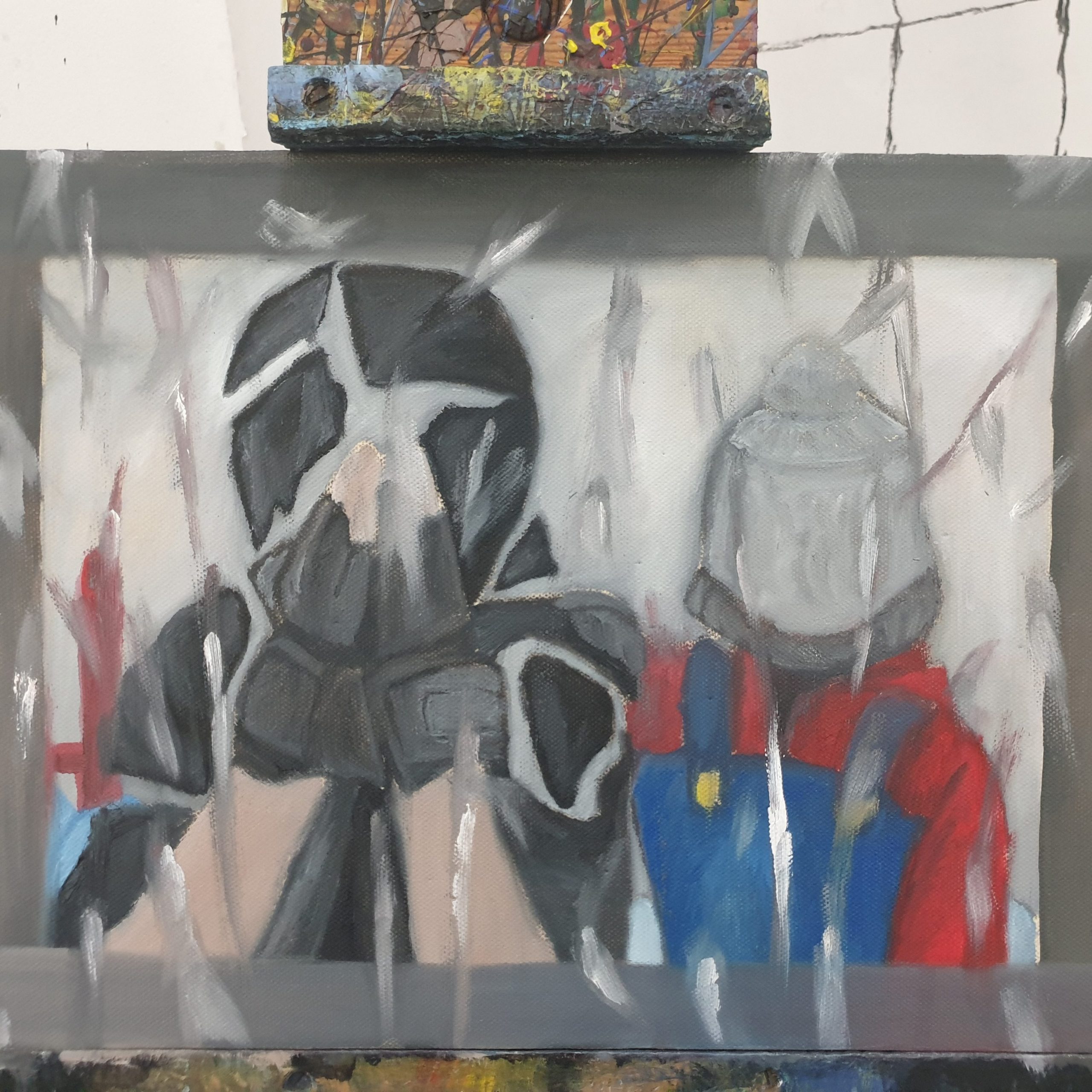 As far as artwork work goes, I have always been a massive fan of surrealism and expressionism. Being massively influenced by the artist; Rene Magritte, Lisa Wright and Odilon Redon. Rene’s thoughts and ideas to construct his figures fuel me with inspiration, one of his artworks “The Lovers” has had a huge impact throughout my own artwork in relation to the concept of the piece. All of the figures in my artwork are performing positive gestures using body language to show a sign of respect this then turns negatively as their faces are concealed blocking all eye contact.