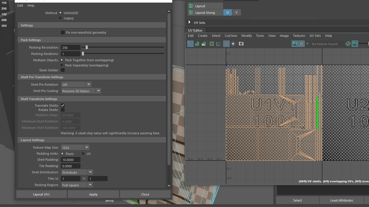 Once all that was done I went into the layout options and made sure that the pixels between was about 10, this neatly organised each shape into the textured area evenly.