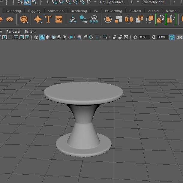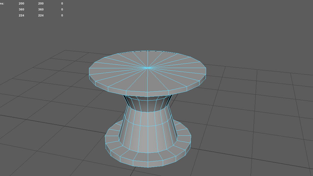To begin, I added a cylinder poly shape to the grid and flattened it into a disk shape with the scale tool. This will be the start of creating the table model.