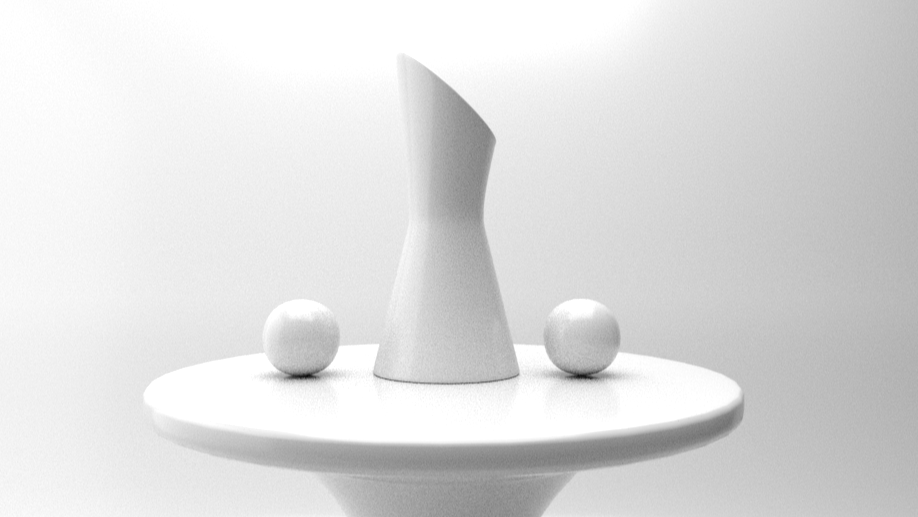 To create these spheres, I added a cube poly to the grid and then smoothed it by 3 divisions to make it. This was then duplicated and positioned correctly on top of the table at either side of the vase.
