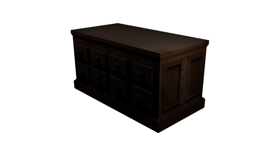 From my research to match the rest of my assets, I decided to go with Victorian spruce looking counter with the added draws. The texturing for this was starting out with a dark brown walnut material with layering on top of this using a small black brush to make the wooden line work. The borders of the counter were made used a slightly dark brown however, this was to capture the boldness of the woodworks structure.