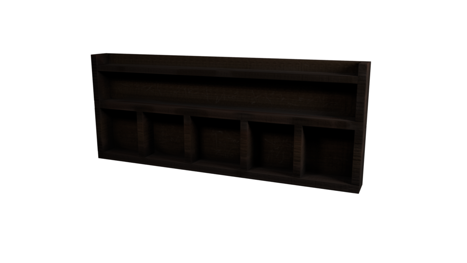 To match the counter I used the same dark “wooden walnut” material, this ended up being darker than expected so I added hints of light brown dust markings to try and bring out some of the corners of the shelf.