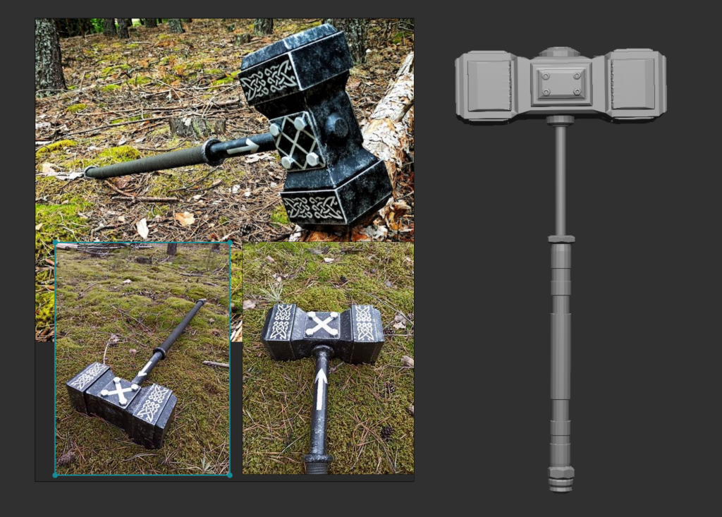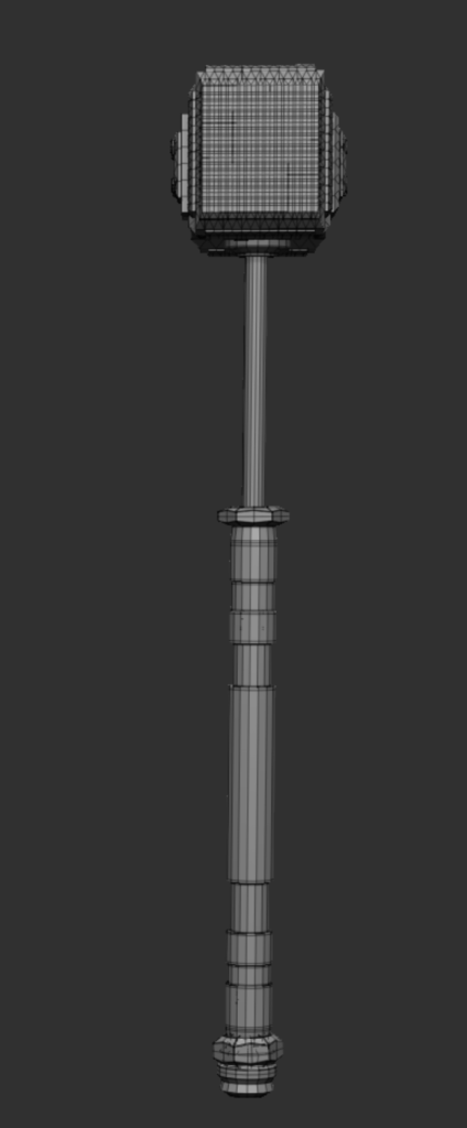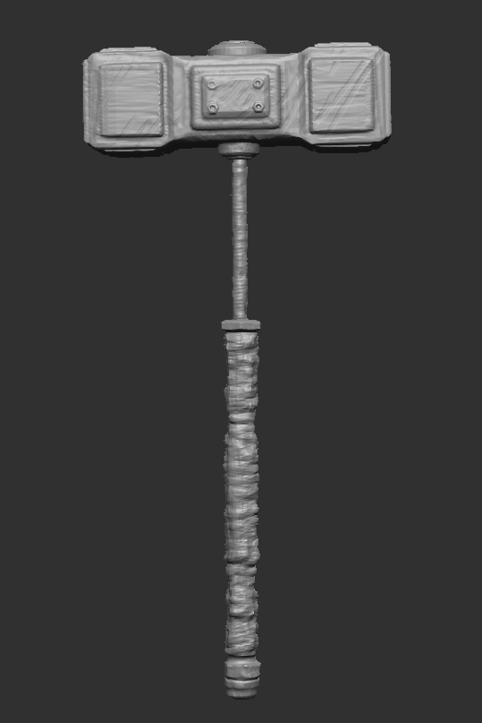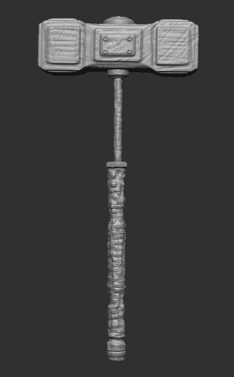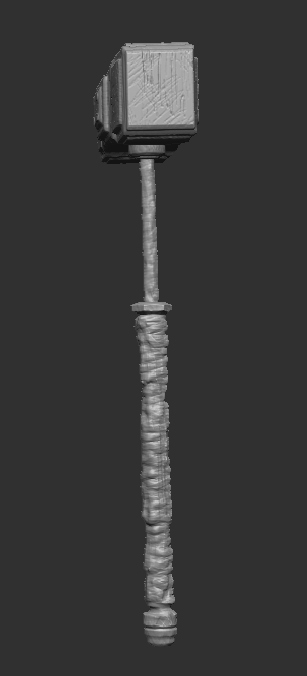 I am happy with how the detailing has turned out, there are not too many small details on the hammer which could overpower the model’s edges. However, if I were to change a certain area it would be the cloth around the stand, this is because I was more confident using the clay build up tool instead of working with an IMM.