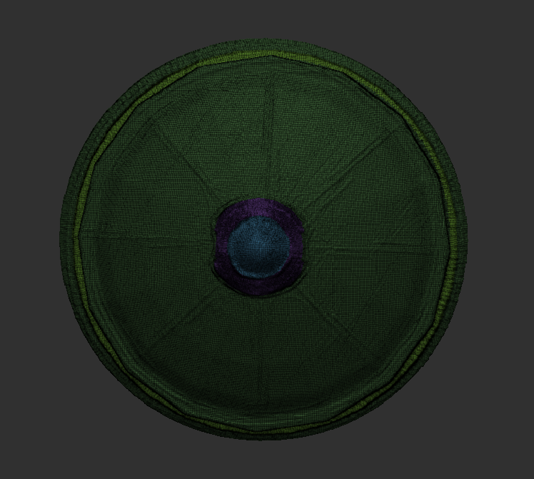 To create this shield, I started off by producing a ring poly by itself as a sub-tool. Then I used the ZModeller functions to alter the size and scale of the shape, IMM tools were also used fairly similar to how the sledgehammer was constructed as parts of decoration and to help build a stronger form.