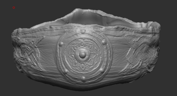 Following on, I then used the clay build up tool to subtract and carve into the belt model, this helped define the structure and creases more.
