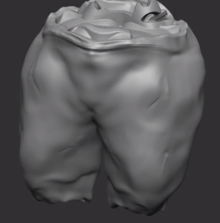 Once happy with the scale and width I coated the whole subtool again with the smooth tool, creating extra soft edges and generating a baggy form. The move tool helped accompany the bagginess of the trousers by providing dips and more inflated curves.