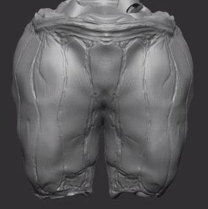 To generate an accurate base for the belt, I masked the lower stomach area of the model off in the shape suited and smoothed out certain edges, leaving a few creases.
