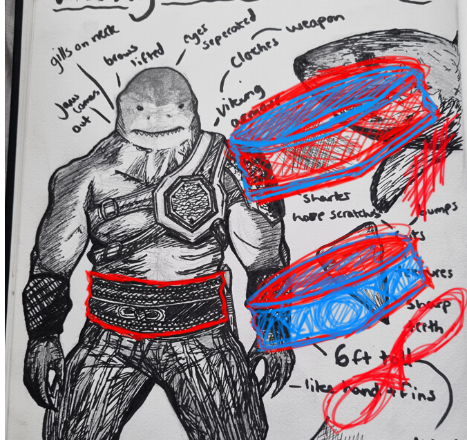 To begin I started by designing a few sketches for the belt, I found that I wanted to closely resemble it based on my great whites accessory but altered it slightly. The belt shall differ in size and detail, using from research a couple of Viking Norse symbols.