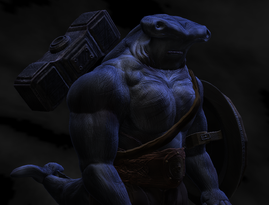 He’s a Viking that shouldn’t be trusted, likes to steal treasures and claim lands with his sea crew full of mutated shark people like himself. Wars have been fought between the Vikings of the land and sea after a series of hunting and polluting events, their leader believes that it’s time for a change. The sea creatures must rise up and defend themselves, claiming lands and taking back what’s rightfully theirs with revenge. This shark specifically is still evolving, he’s more of a defensive troop because of his large size and mass, mainly shielding others from attacks with his shield and tough skin. That’s also how he gained the name Uknuselig, the Norwegian word for unbreakable. Since Uknuselig is still evolving to the surface, he contains more shark features than the others in his crew, which also means that his behaviour is very primitive.