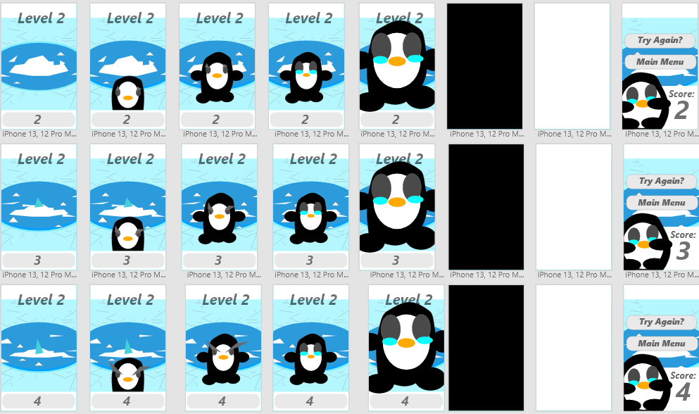Thinking about what challenges I could add to the game, I could have stretched several ideas and applied them to the game, one idea I had was to have a seal pop out of the water and push the ice side to side making it difficult to tap. In the end, I ended up using the concept of a penguin bouncing in front of the ice, making a small challenge gradually progressing faster the more the ice is broken.