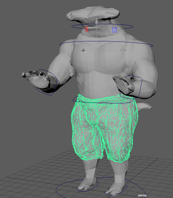 For the character clothing, I used the wrapping feature with Maya to attach them to the character. Using this feature also helped link the character’s movements with the clothing almost straight away, there was nearly no skin weight needed, and only the smallest sections were actually affected.