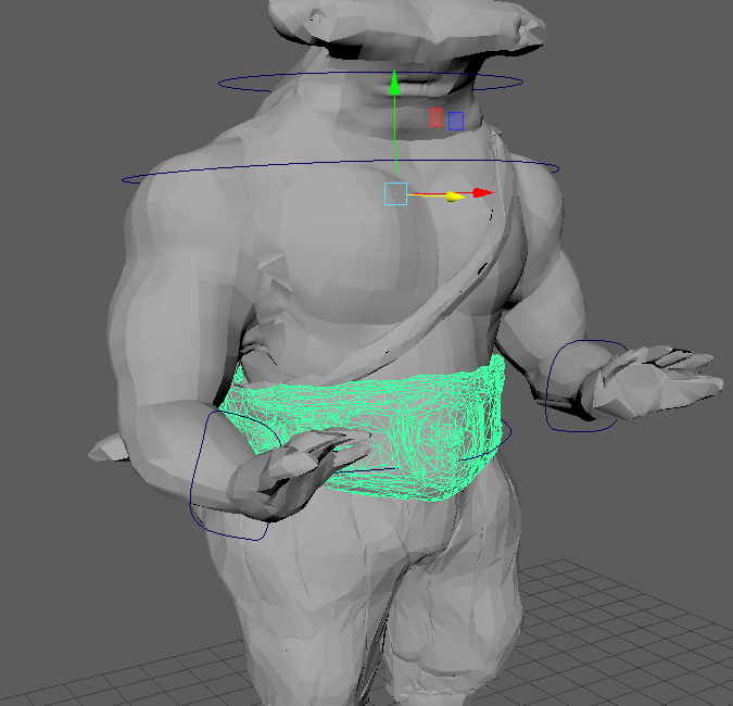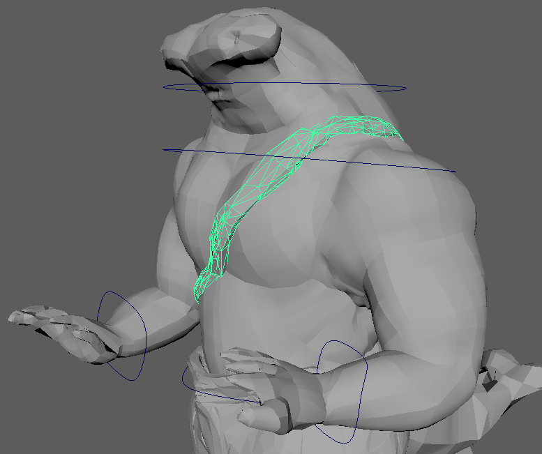 The same wrapping steps were applied to the strap that’s around the chest, this was then parented to the model so movements were in sync.