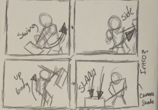 To begin I chose the best scene from the sketches and videos, being the hammer swing and started the development of keyframing within the software.