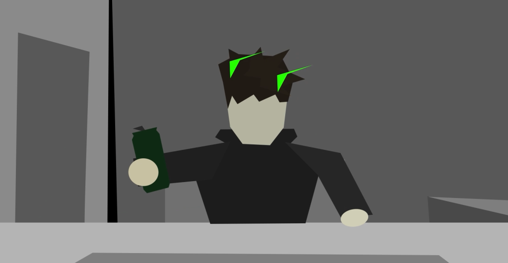 (Bedroom Scene, Energy Drink placed within the foreground on Desk)