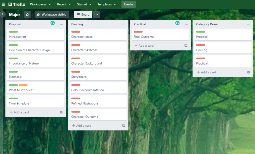 Here is a screenshot from my Trello page, this will be where I mainly will sort out my project’s information of post-completion. I personally like to use Trello as it’s easy and great to organise data, I have used a standard highlight system on my page to help show what’s finished, green is completed and red is to be done.