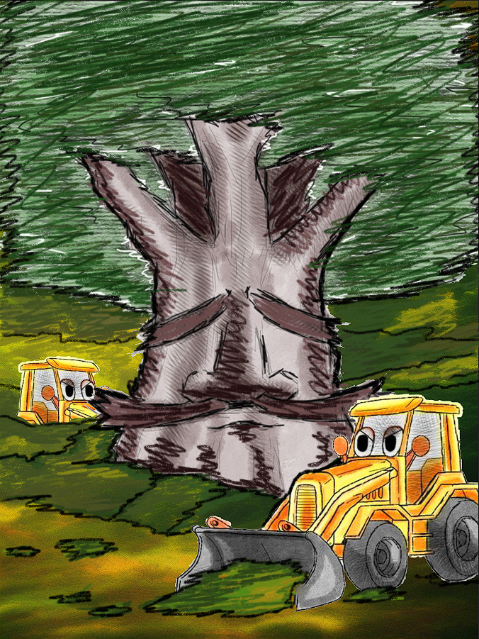 Bully plays the antagonist role within the campaign’s image, he shows the threat against nature in the form of a bulldozer. In the character archetype list, I feel like he falls under the outlaw/magician category because he holds a lot of power within his hands on how much construction and harm he can cause. By having Bully act negatively within the scene towards the trees, I am hoping to achieve clarity within my audience, making them feel emotion towards it and educating them early.