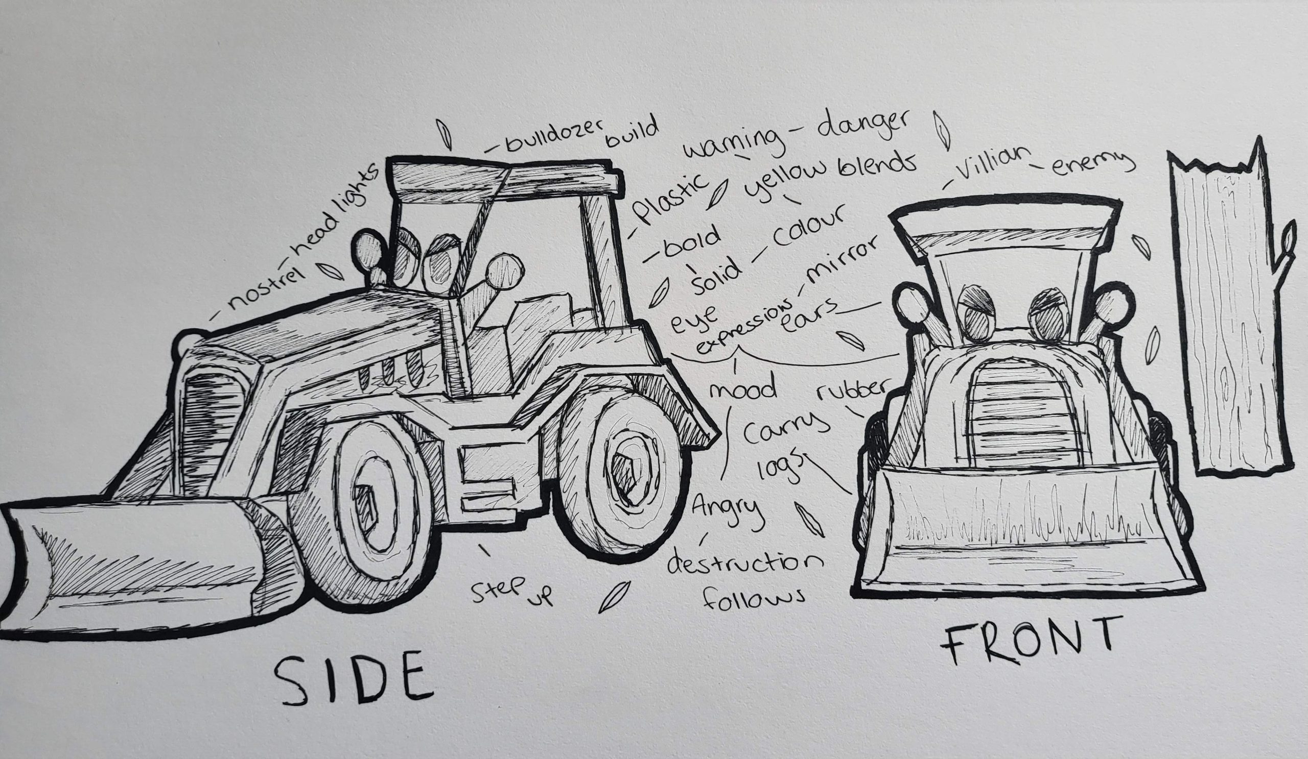 Bulldozers were formally designed for helping plant crops in fields but over time mankind has found its high horse powers need effective in other areas which do more harm to the environment than help it. They are used now for construction to build and deconstruct surroundings. The character Bully is driven by this same objective, he has grown up from a small truck knowing wrong, being misguided by society damaging nature than helping it.