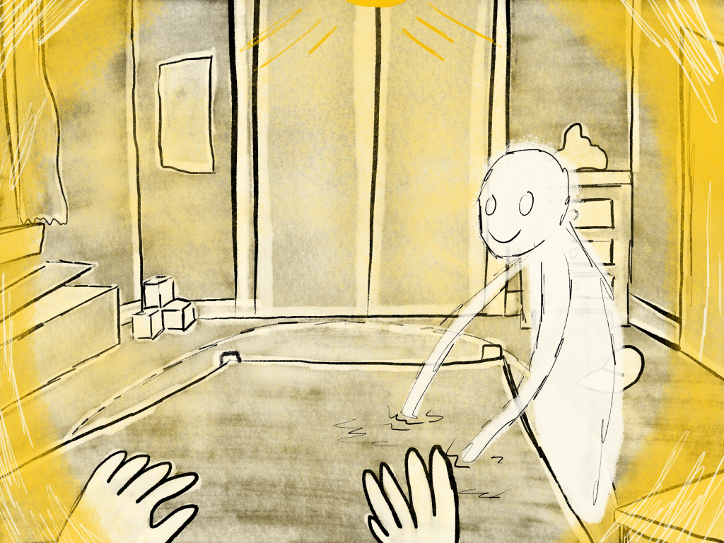 Within my story, I shall be mainly using sounds and light patterns to navigate the user through the experience, making their senses adapt to the environment around them while being in a stationary position. Since I want the experience to be within the eyes of a child (who’s afraid of the dark) I want to play on the mind’s curiosity when one of its senses is taken away, syncing the viewer’s perspective with the embodied character. Using travelling sounds around the environment I am hoping to conjure imagery in the mind when it’s dark, focusing on that sense throughout the video.