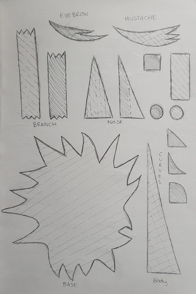 This diagram explains all of the details and functions of the tree that I’ll need to know, including the materials needed to build it. To make things easier for myself when I start to sculpt, I decided to develop a netting template for my model, this will hopefully help me produce certain features more accurately and create a solid foundation.